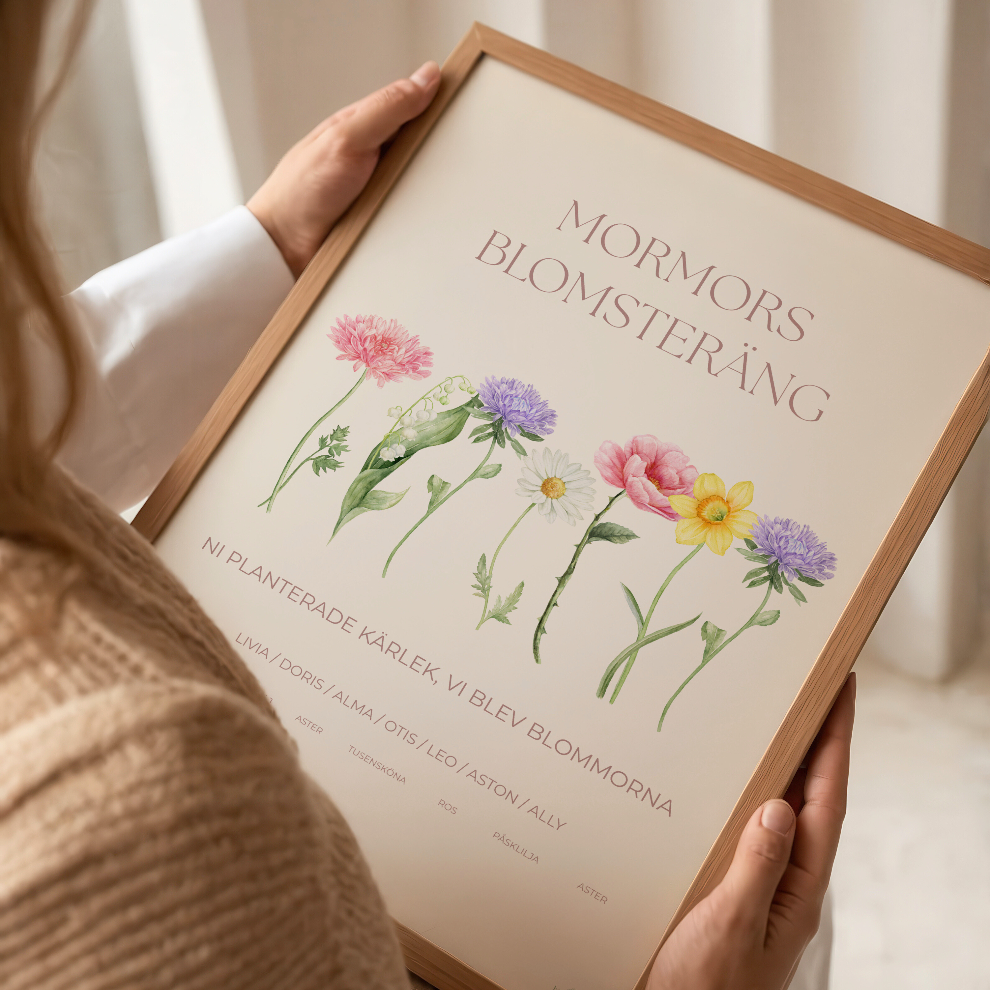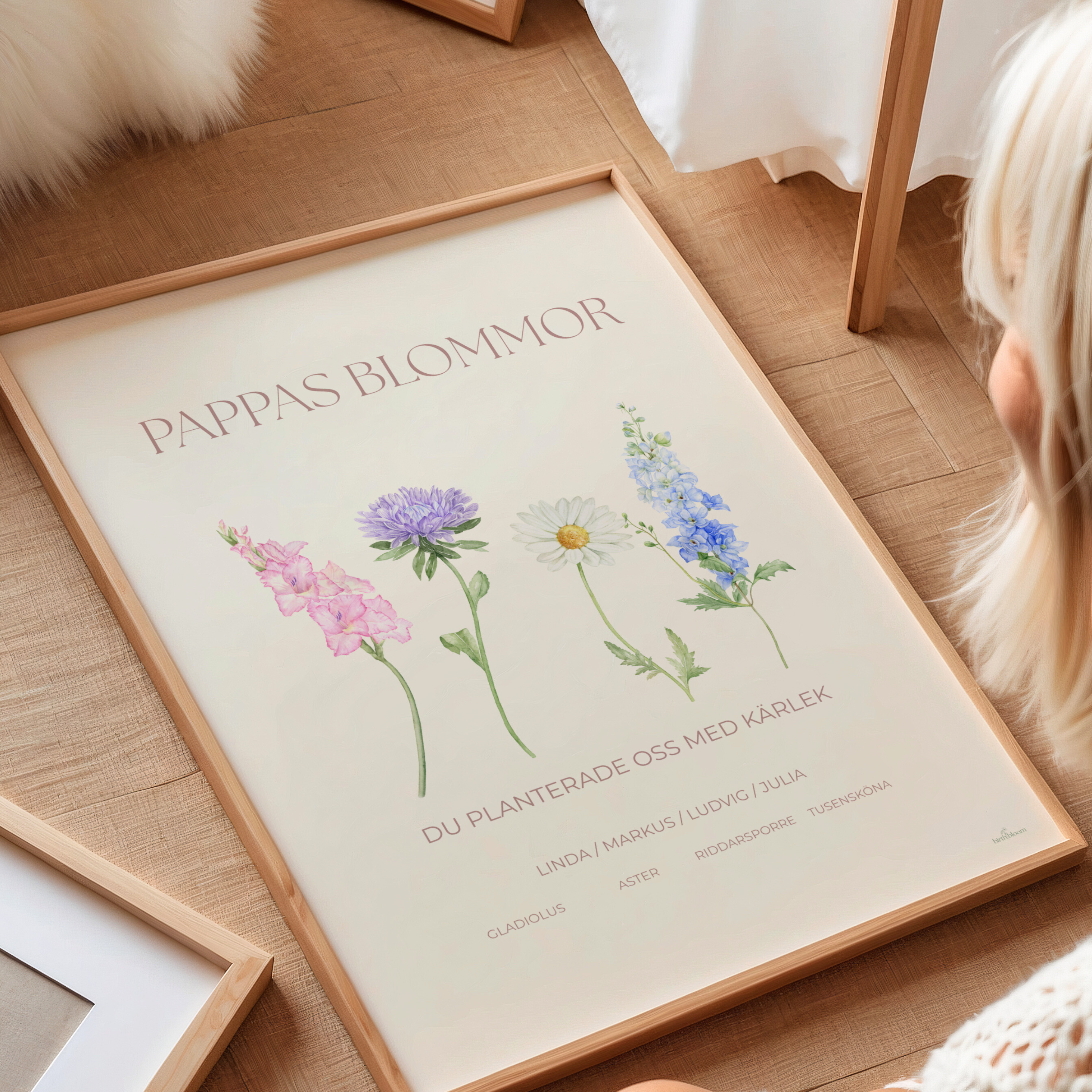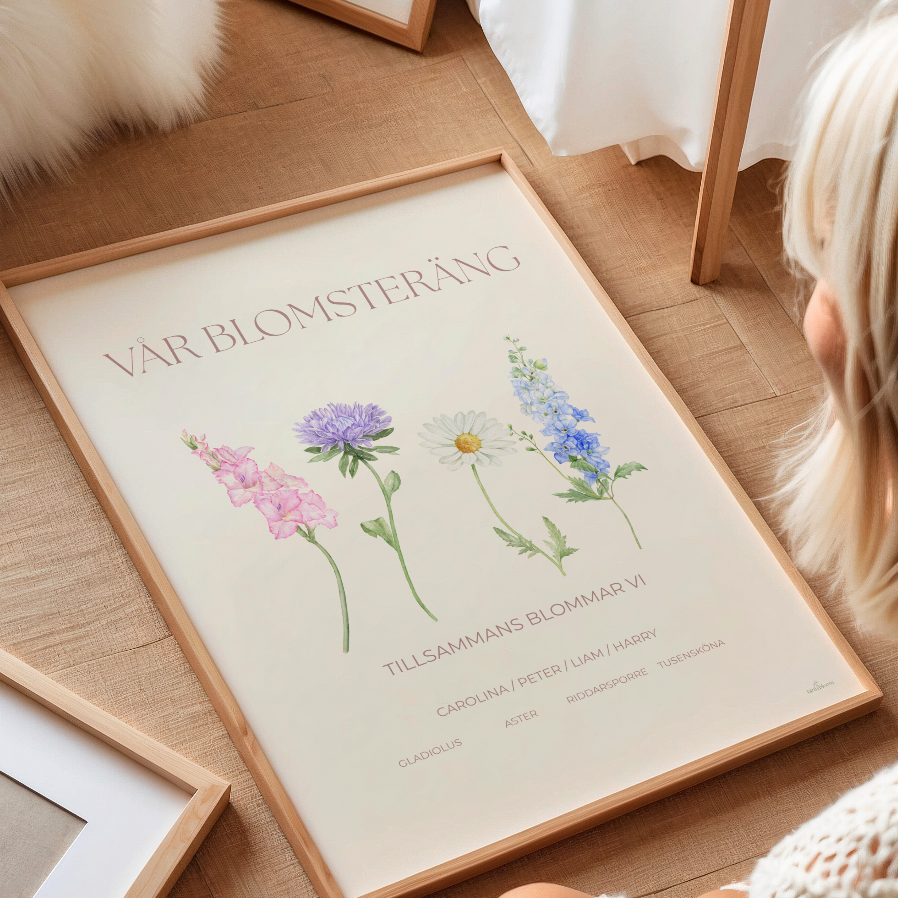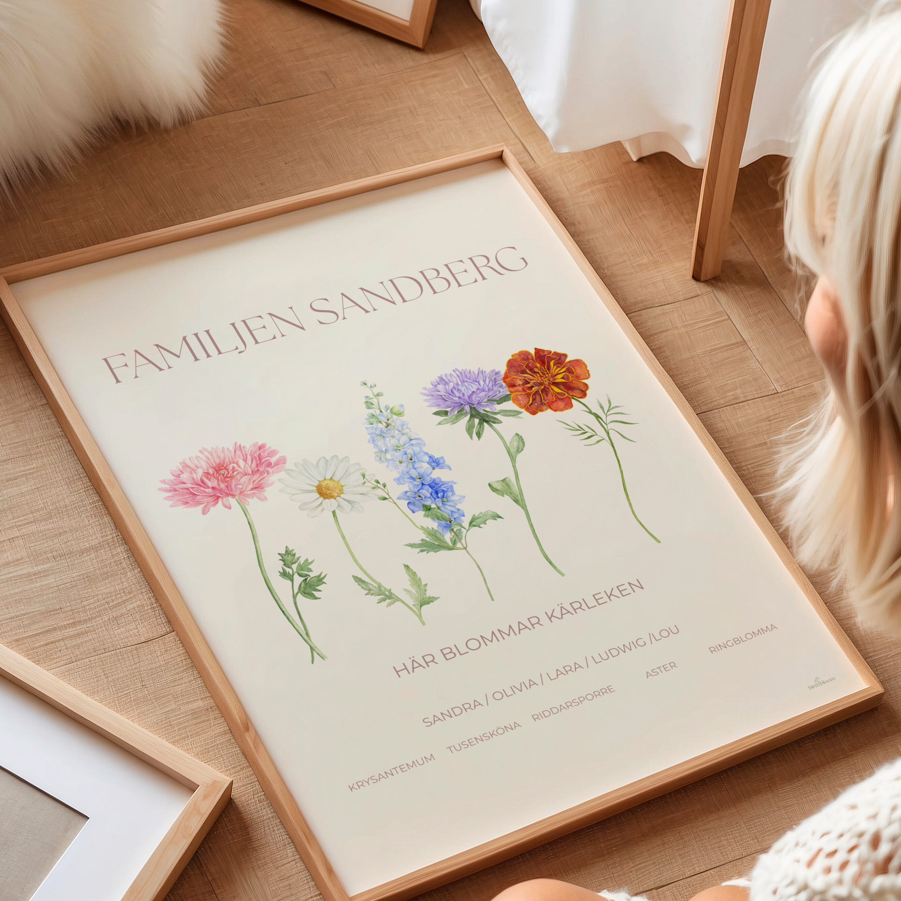 Postern "The family" ger er oändliga sätt att skapa ett konstverk som visar er familj eller släkts blomsteräng. Oavsett om det är en födeslsedagspresent, julklapp eller till mamma på morsdag, så kommer detta vara en uppskappad och rörande present.
